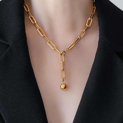 Small Gold Ball Simple Plain Chain Necklace Collarbone Chain Women's Ins Fashion Hip-hop Jewelry