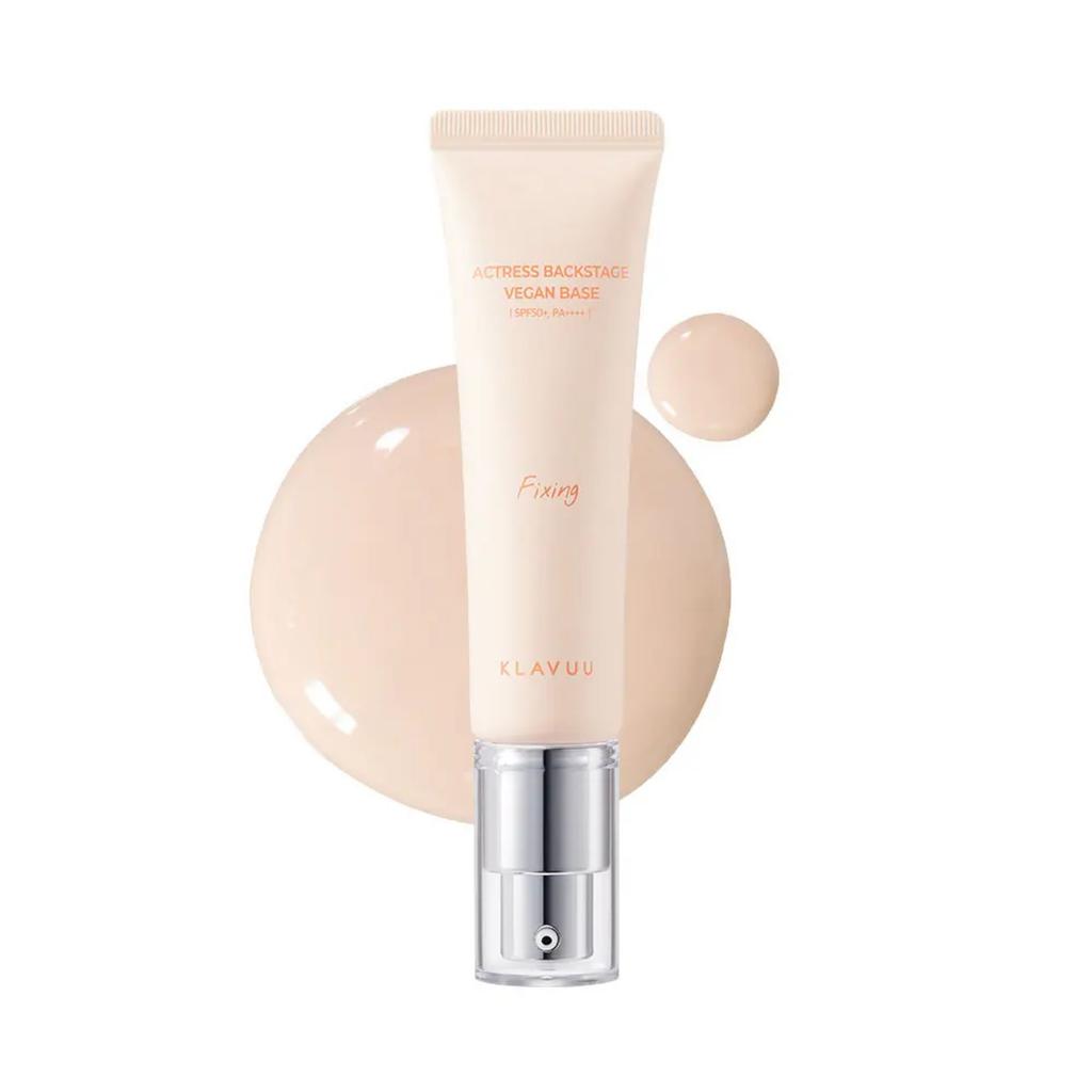 KLAVUU Actress Backstage Base Fixing is a lightweight makeup base designed to enhance skin radiance while helping makeup stay fresh and smooth for longer. Infused with skin-conditioning ingredients, this brightening base helps even out skin tone and create a flawless canvas before foundation application. The silky formula spreads easily across the skin, providing hydration and a soft luminous finish while helping improve makeup adherence. With SPF50+ PA++++ protection, it also helps defend the skin from harmful UV rays.