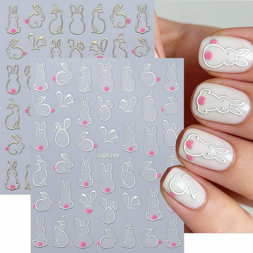 Rabbit Ears Nail Art Decals Waterproof Nail Decals New Easter Rabbit 3D Nail Stickers Manicure DIY