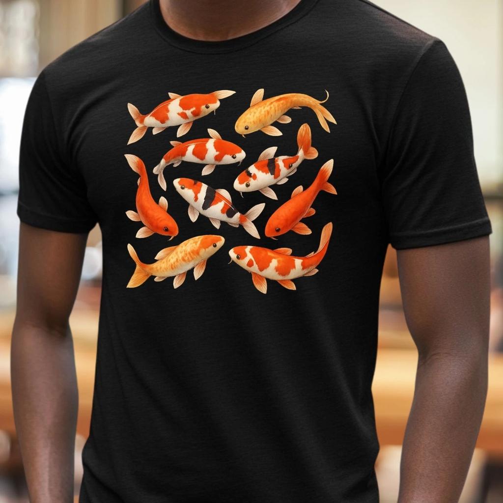 MENS WOMENS Koi Fish Motif Cotton T-Shirt