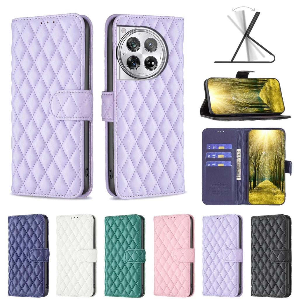 Flip Cards Solt Wallet Leather Case For Oneplus 12 12R Nord 4 Book Cover Kickstand Diamond Grid Pattern Bag Pocket Ultra Thin
