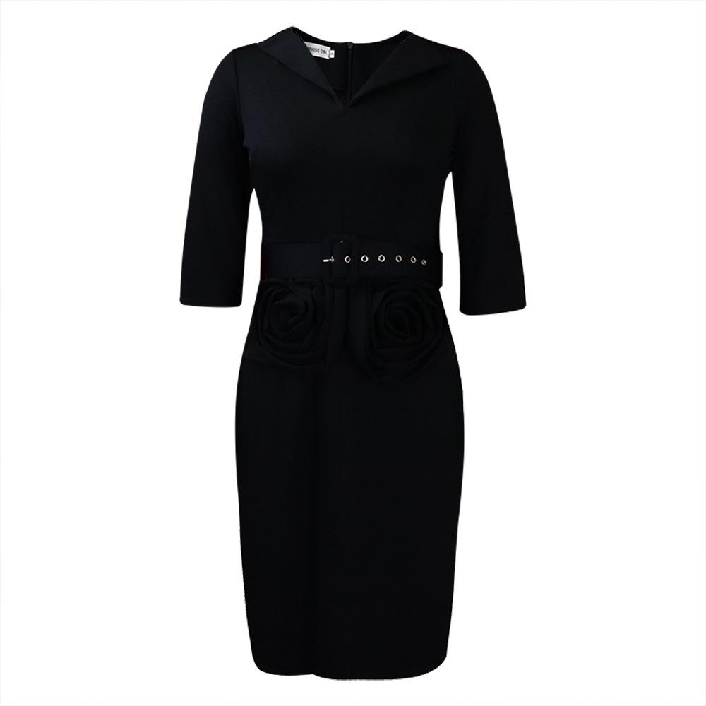 L Women's Autumn Plus Size Office Professional Pencil Rose Dress