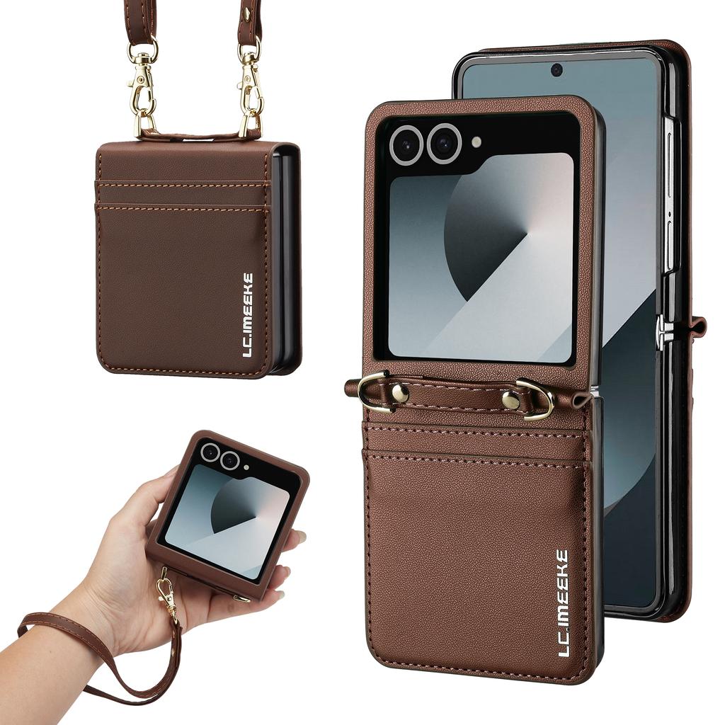Crossbody Cards Solt Wallet Leather Case For Samsung Galaxy Z Flip 7 6 5 4 5G 3 7FE Flip7 Bag Strap Long Lanyard Business Cover