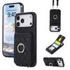 Crossbody Ring Holder Cards Solt Wallet Flip Leather Phone Case For iPhone 17 Pro Max 16 Plus 15 14 13 12 11 Long Lanyard Cover