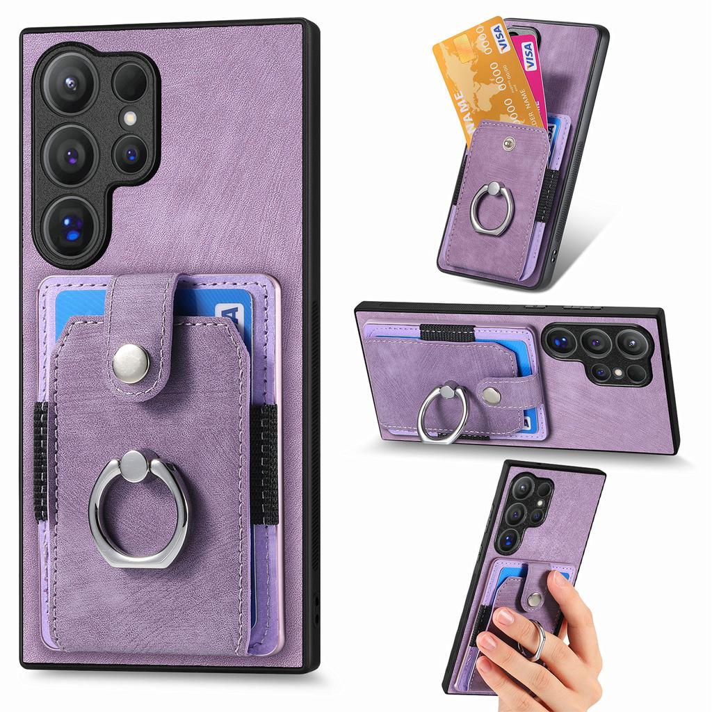 Vertical Cards Solt Wallet Elastic Bag Ring Holder Case For Samsung Galaxy S25 Ultra S24 FE S23 Plus A16 A06 A26 A36 A56 Cover