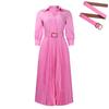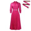 Women's New Fashion Lapel Long-sleeved High-waisted Temperament Pleated Solid Color Dress