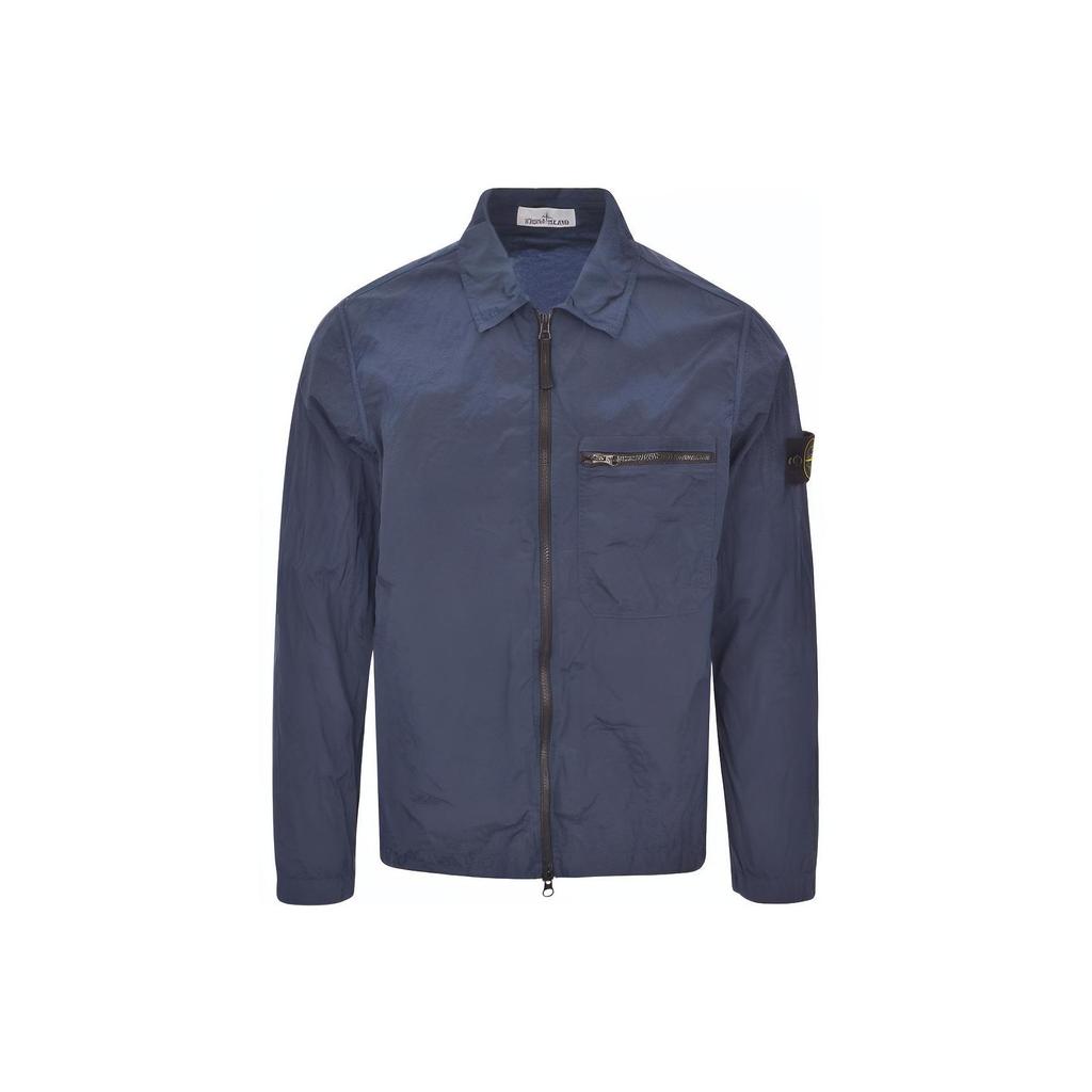 STONE ISLAND Ss24 Nylon Metal Lightweight Solid Color Polo Collar Single Pocket Logo Long Sleeve Jacket Men Jackets Gray Blue 801511219-V0024