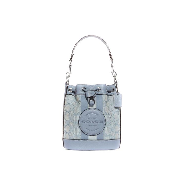 Coach Dempsey 19 Classic Logo Floral Patchwork Fabric And Leather Bucket Bag Women Shoulder Bag Light-Blue C8322-SVS9X