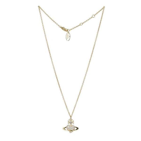 - Featuring a design with large and small cubic points, a logo graphic pendant, and cut stone, the necklace includes an ORB point at the clasp. The chain length is adjustable, and the orb diameter is 3cm.
