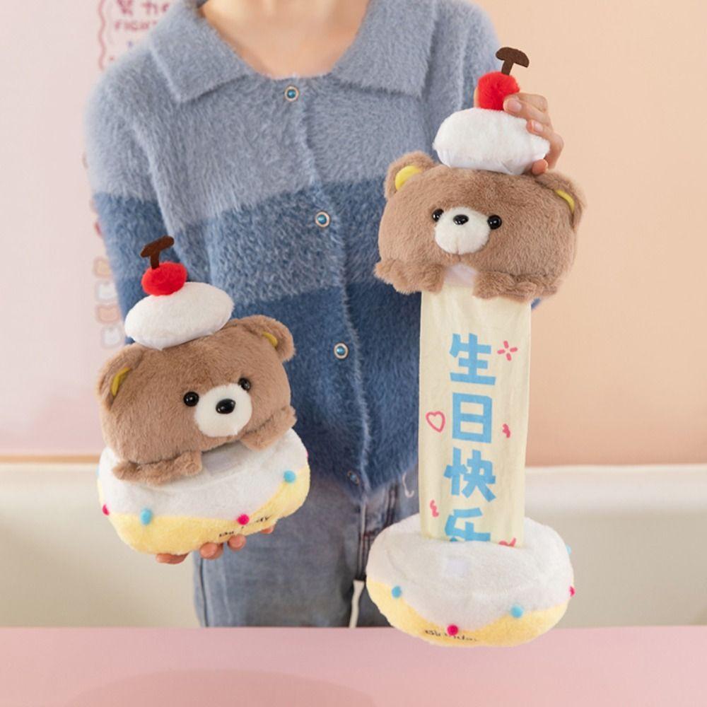 Creative Bear Cake Plush Toy Pull-out Stuffed Animal Doll Adorable Birthday Gifts Valentine's Day