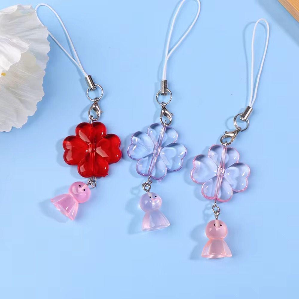 Y2K Sweet Mobile Phone Lanyard Key Chain Leaf Clover Pendant Sunny Doll Phone Charms Couple Gifts