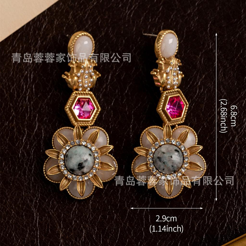 Vintage Jewelry Procurement Heavy Industry Light Luxury Retro Flower Earrings Sweet High-end Feeling