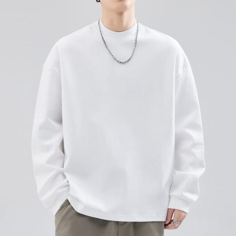 Men's Clothing T-Shirts Long Sleeve Autumn Round Neck Fashion New Comfortable Versatile Solid Color Black White