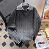 Fake Two-piece Twist Polo Neck Sweater Men's Autumn Trendy Brand Versatile Pullover Thread Jacket American Retro Loose Knitted Sweater