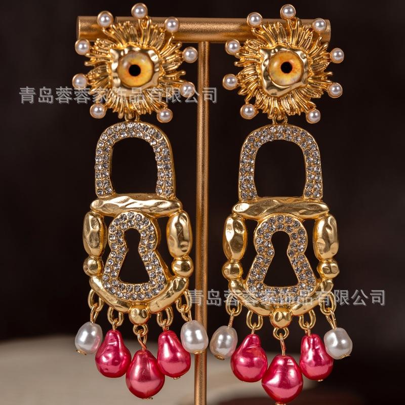 Middle Aged High-end Earrings Xiapa Runway Style Sun Eye Lock Pearl Exaggerated Personality Feel