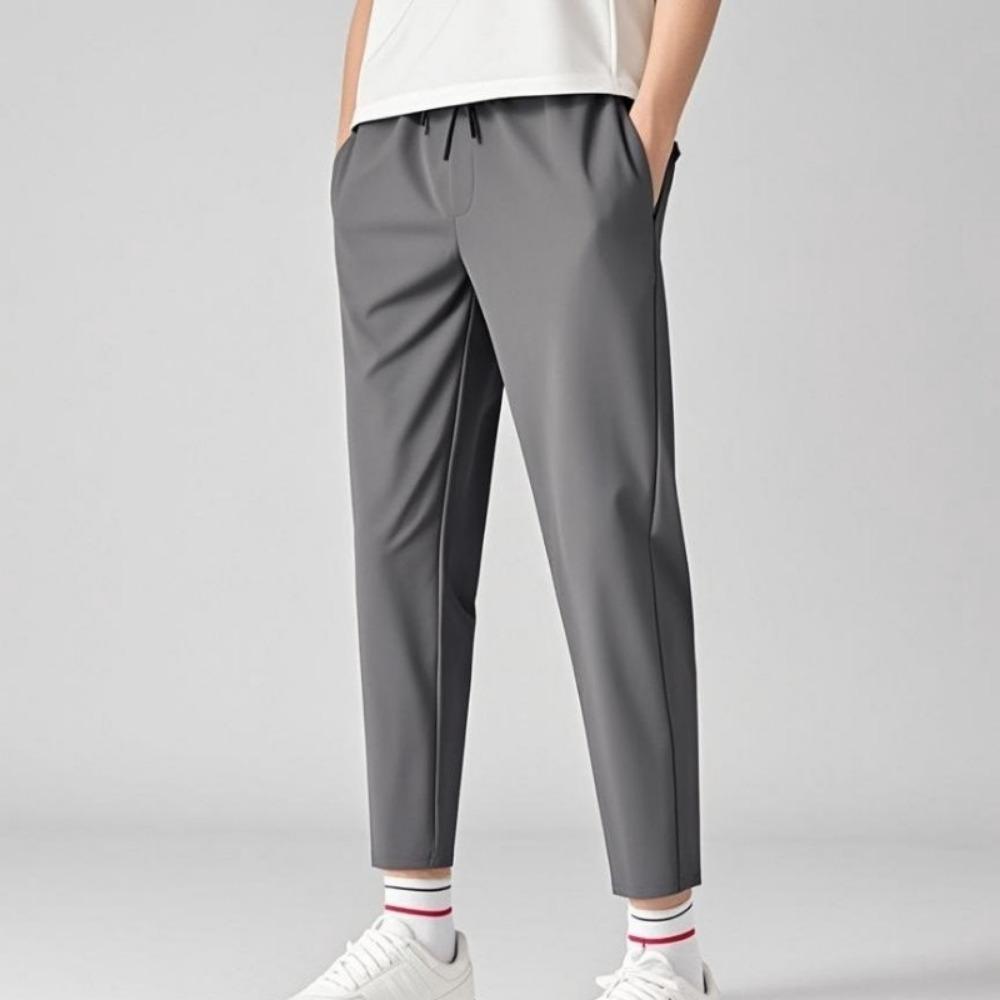 Summer Thin Ice Silk Nine-point Pants for Men's Casual Pants Trendy New Small Feet Slim and Loose Straight Young
