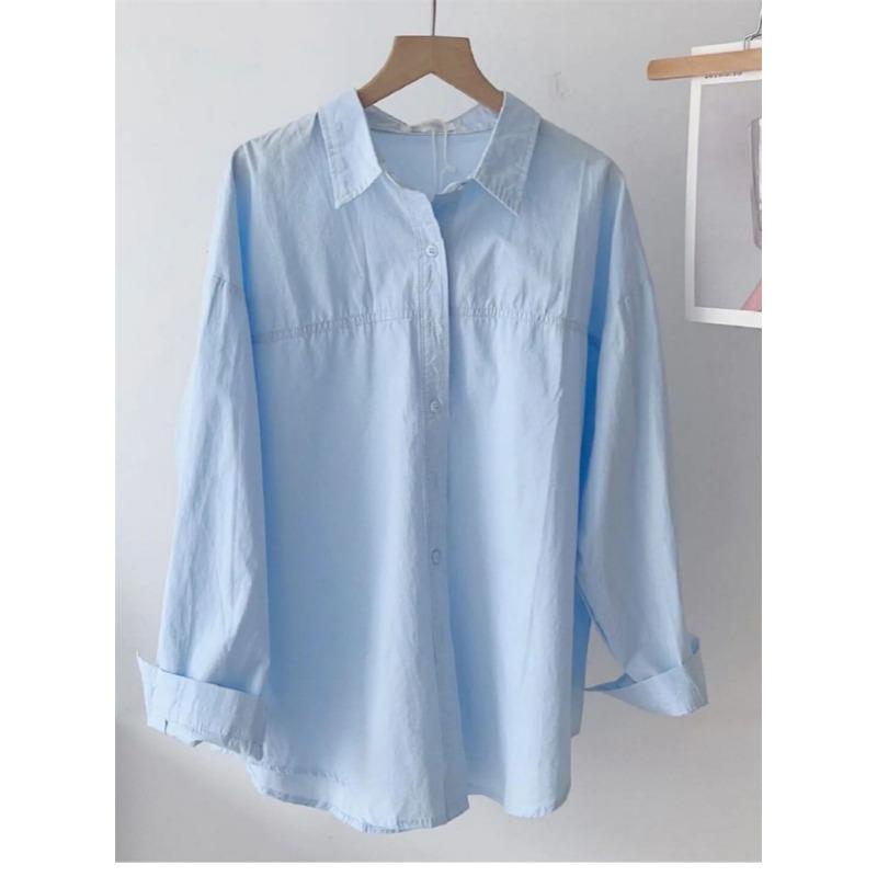 New Cotton Shirt Women Large Size Long Sleeved Loose Long Shirts Jacket Lapel Sweet Office Spring Autumn Blouse Simple Casual Tops Basic Clothing