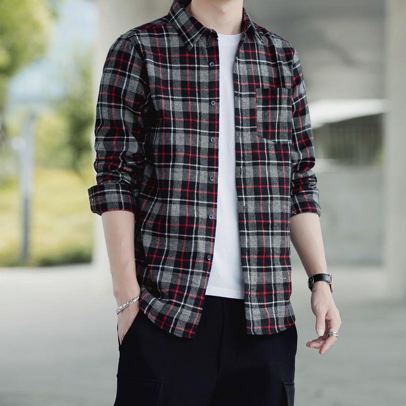 Autumn New Thickened Plaid Shirt Men's Casual Long-sleeved Shirt Korean Style Loose Jacket