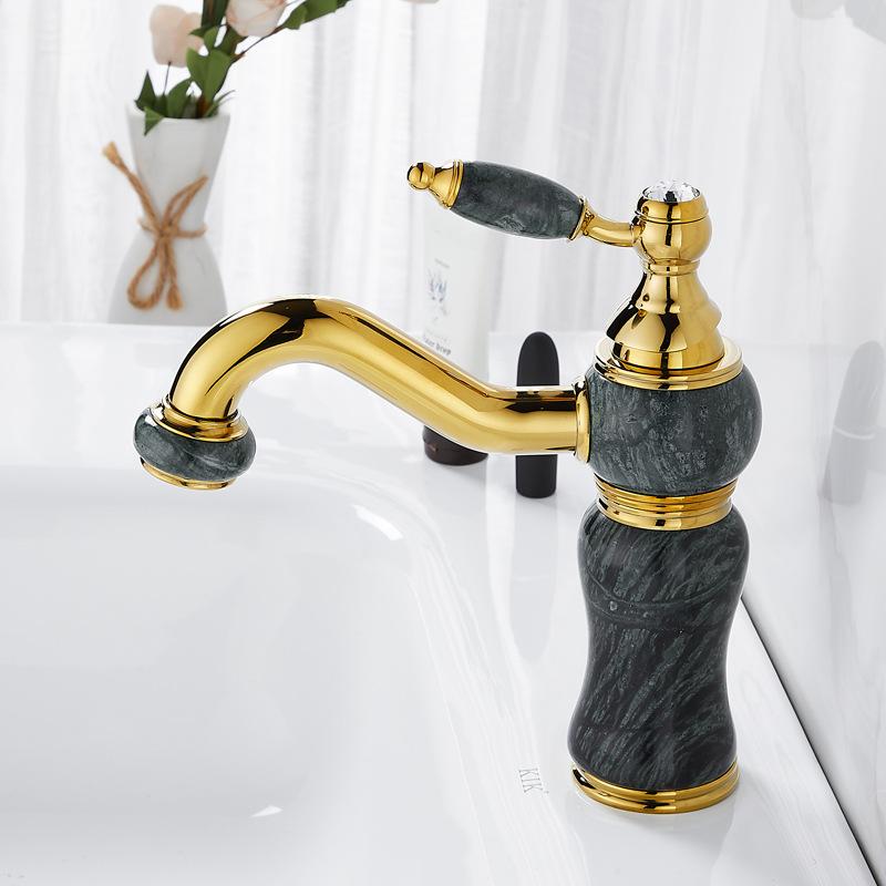 Gold Bathroom Faucet Brass and Marble Gold Bathroom Basin Faucet Cold And Hot Water Mixer Sink Tap Deck Mounted Gold Tap