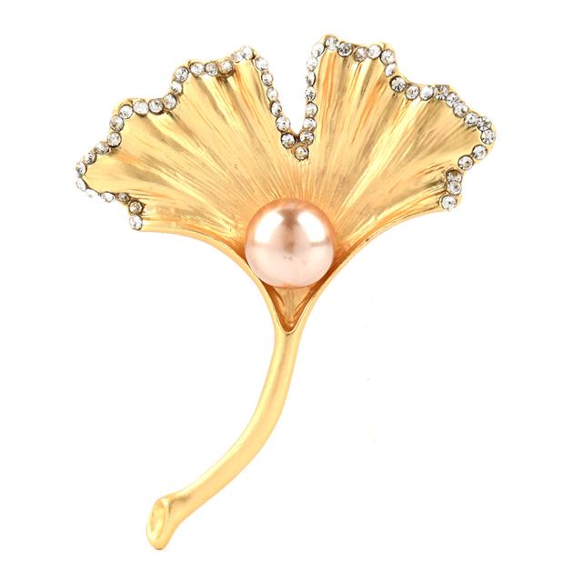 Rhinestone Pearl Gold Color Ginkgo Leaf Brooches For Women Alloy Metal Plant Casual Nuptial Weddings Brooches Pins Souvenir GiftsCasual Jewelry