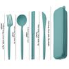 Portable Knife, Fork, Spoon and Chopstick Set for Outdoor Camping. Black Wheat Straw Tableware Set of Four Pieces.