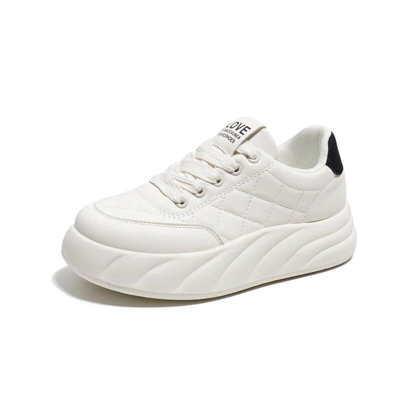 Women's White Walking Casual Sneakers Comfortable Female Students Elevator Comprehensive Sports Leather Shoes Breathable