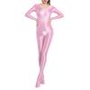 Womens Glossy Smooth Full Body Jumpsuit Long Sleeve Stretchy Bodysuit