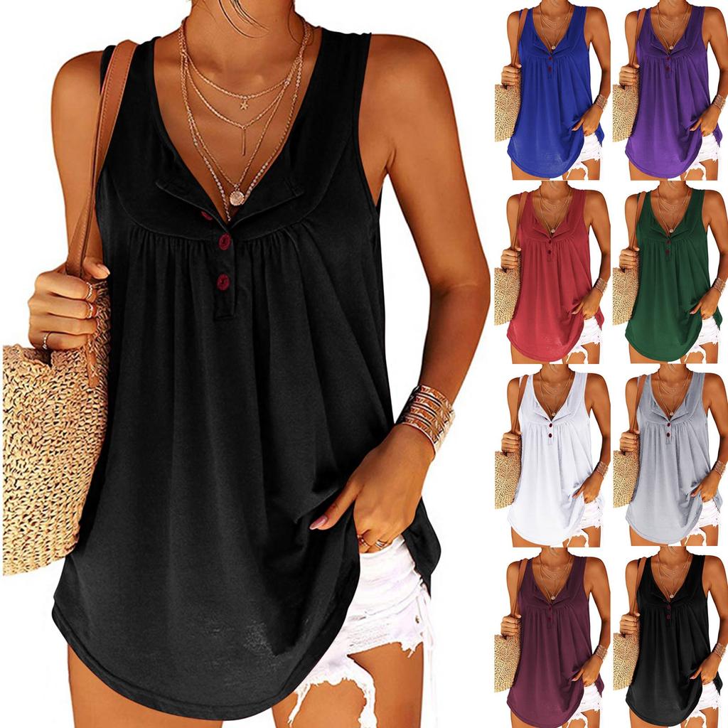 Women's Fashion Casual Loose Pleated Button Sleeveless Vest Tank Top