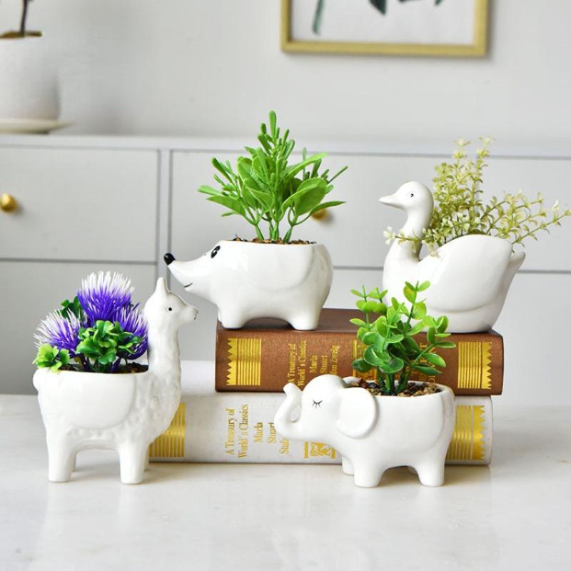 Creative Cartoon Alpaca Swan Ceramic Flowerpot Nordic Plant Pot Succulent Flowerpot Animal Shaped Pots Home Decoration Ornaments