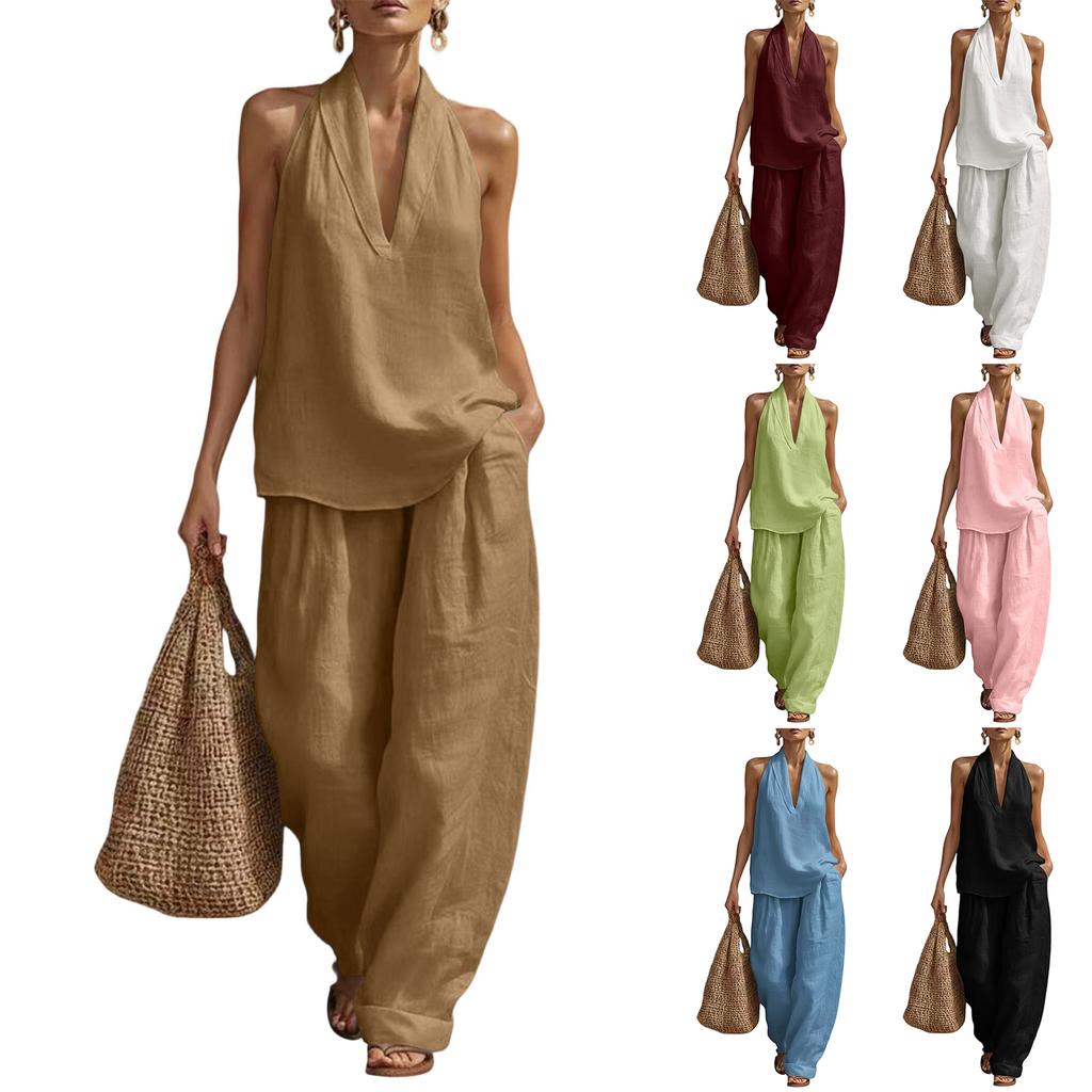 Women's Fashion Sleeveless Loose-Fitting Off-the-Shoulder Casual Two-Piece Set