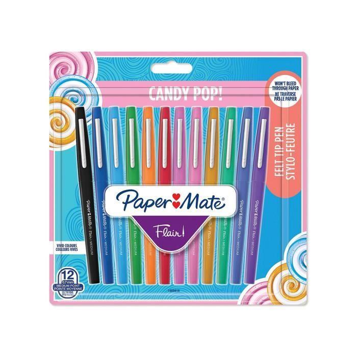 Paper Mate Flair Candy pop - 12 feutres - Assortiment de couleurs - pointe moyenne 0.7mm - sous blister