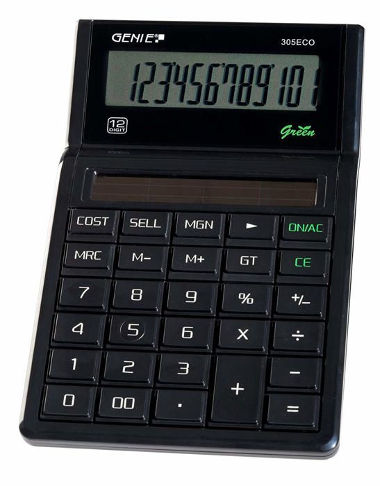 Calculatrice de bureau - Genie - 11763 - Énergie solaire - Écran incliné 12 caractères - Écologique