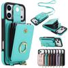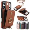Crossbody 2 In 1 Magnetic Zipper Cards Solt Leather Wallet Case For iPhone 17 Pro Max 16 Plus 15 14 13 12 11 Long Lanyard Cover