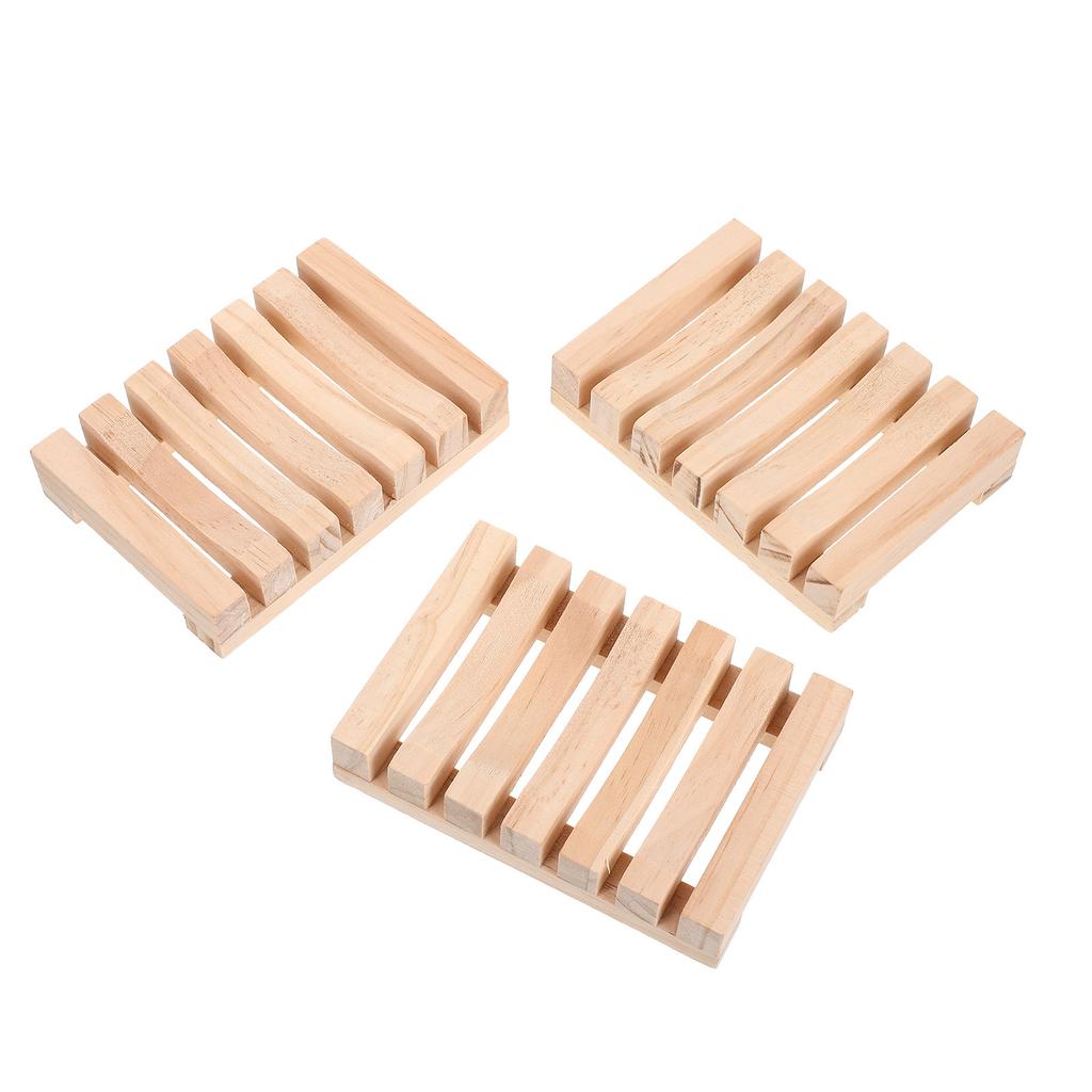 3Pcs Wooden Soap Holder Eco Friendly Solid Wood Soap Dish with Clear Texture Smooth Finish Drain Holes for Bathroom Shower