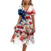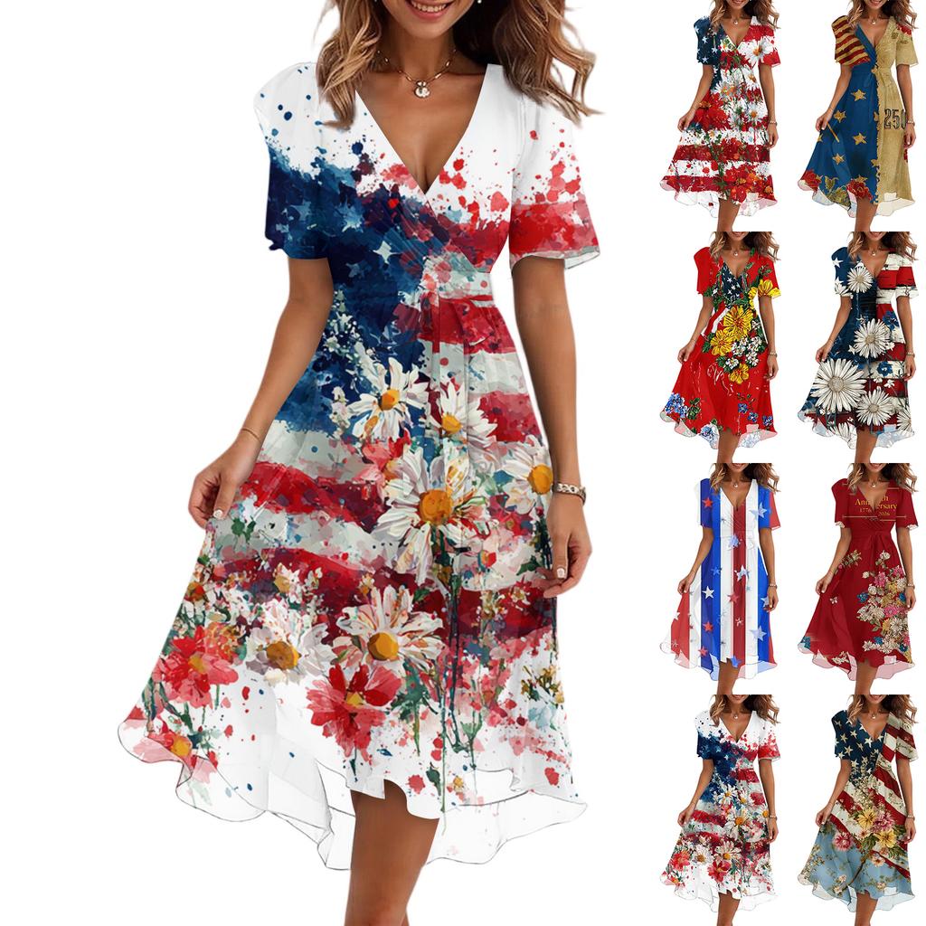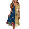 Women's Fashionable Casual V-neck Short-sleeved Independence Day Printed Dress
