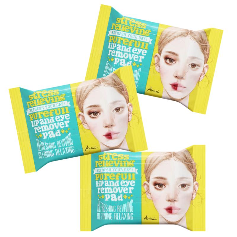 Effortlessly remove heavy point makeup with the Ariul Stress Relieving Lip & Eye Remover Pad. These award-winning pads are pre-soaked in a specialized cleansing oil and water formula that dissolves even the most stubborn waterproof mascara and long-lasting lip tints in seconds. Infused with a blend of natural yellow vegetable oils (Carrot, Pumpkin, Corn) and soothing botanical extracts, it cleanses without irritating the delicate eye area or leaving a greasy residue. The compact, resealable pouch makes it perfect for travel, the gym, or late nights when you need a quick and thorough cleanse. Experience a "stress-free" cleansing routine that leaves your skin feeling fresh and hydrated.
