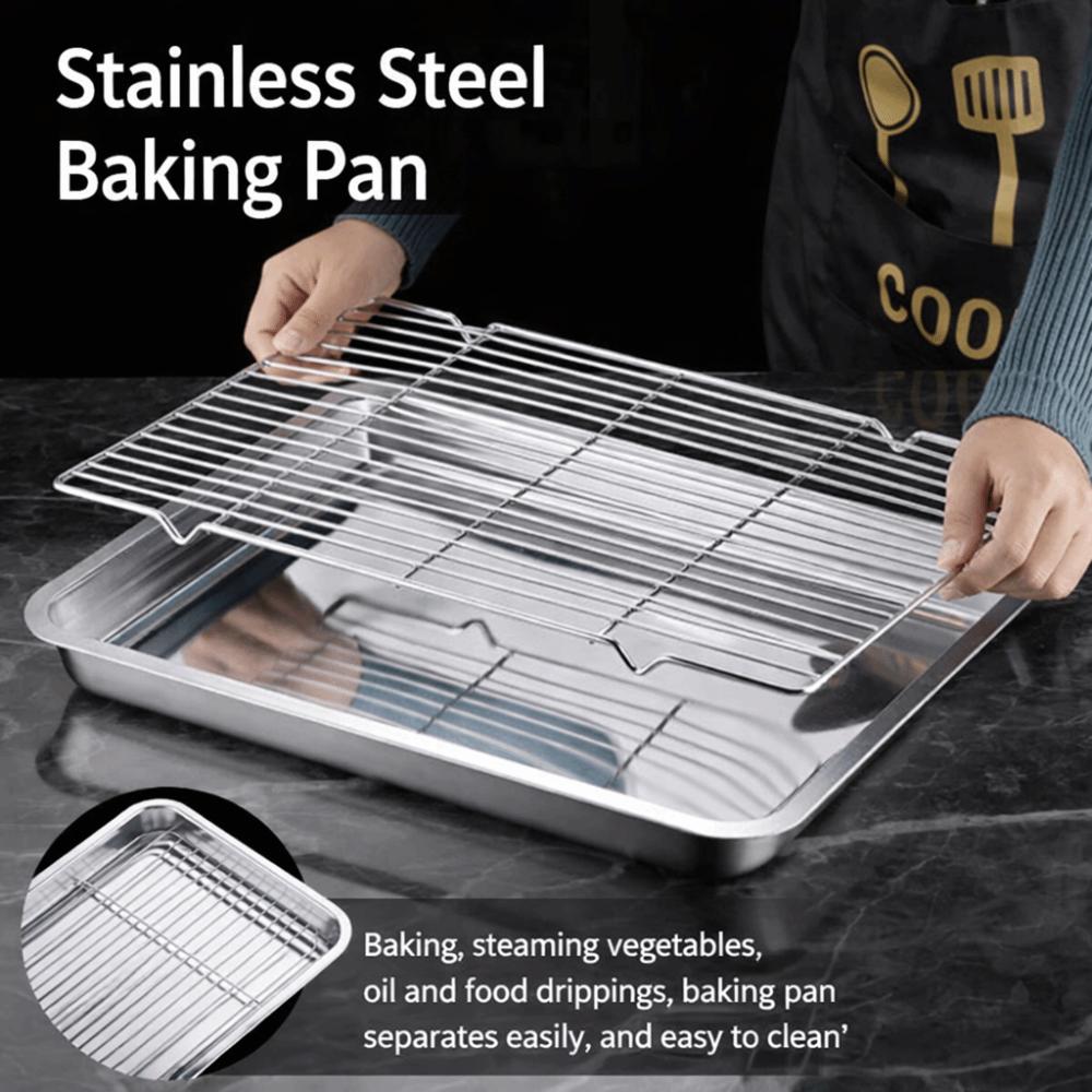 Removable Stainless Steel Baking Pan with Cooling Rack Oven Rack BBQ Tray for Cooking Roasting
