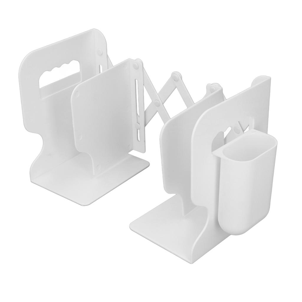 Extendable Bookend Non Skid PP Hvy Duty Decorative Book Shelf Holder for Desk with Detachable Pen Holder