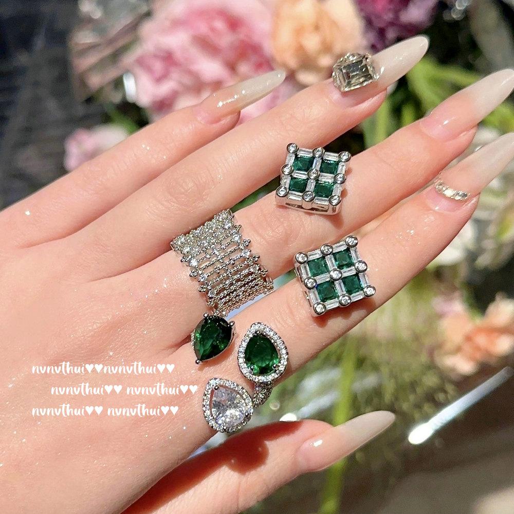 Princess Tears Malachite Green Water Drop Gemstone Ring, Rich Gold, 18K Gold Plated, Emerald Square Zircon Earrings.