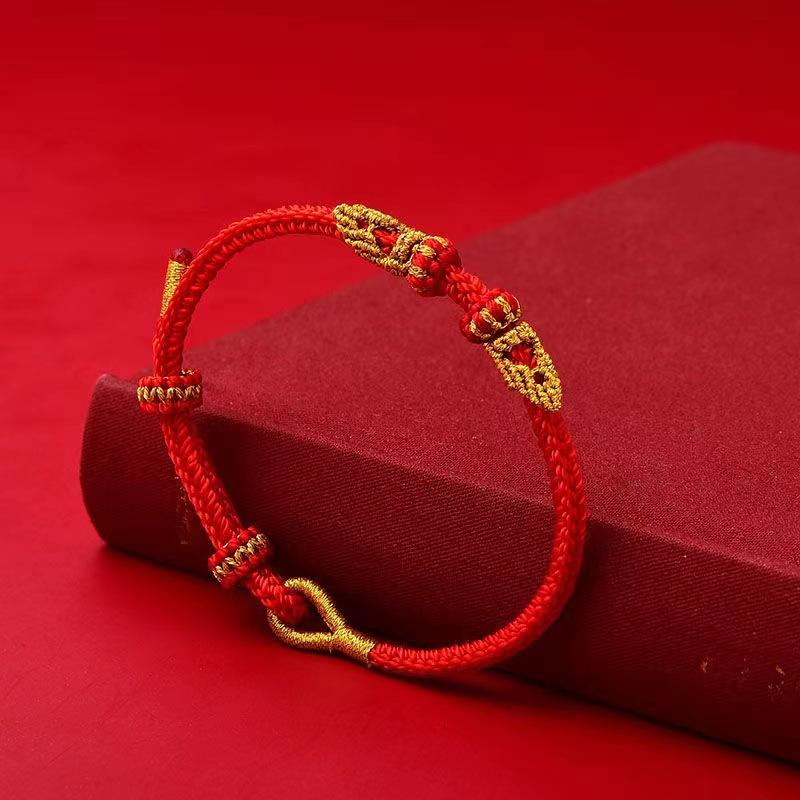 Hand-Woven Wenchang Bergamot Red Rope Bracelet, Natal Year Red Rope Removable Beaded Pendant, Finished Rope