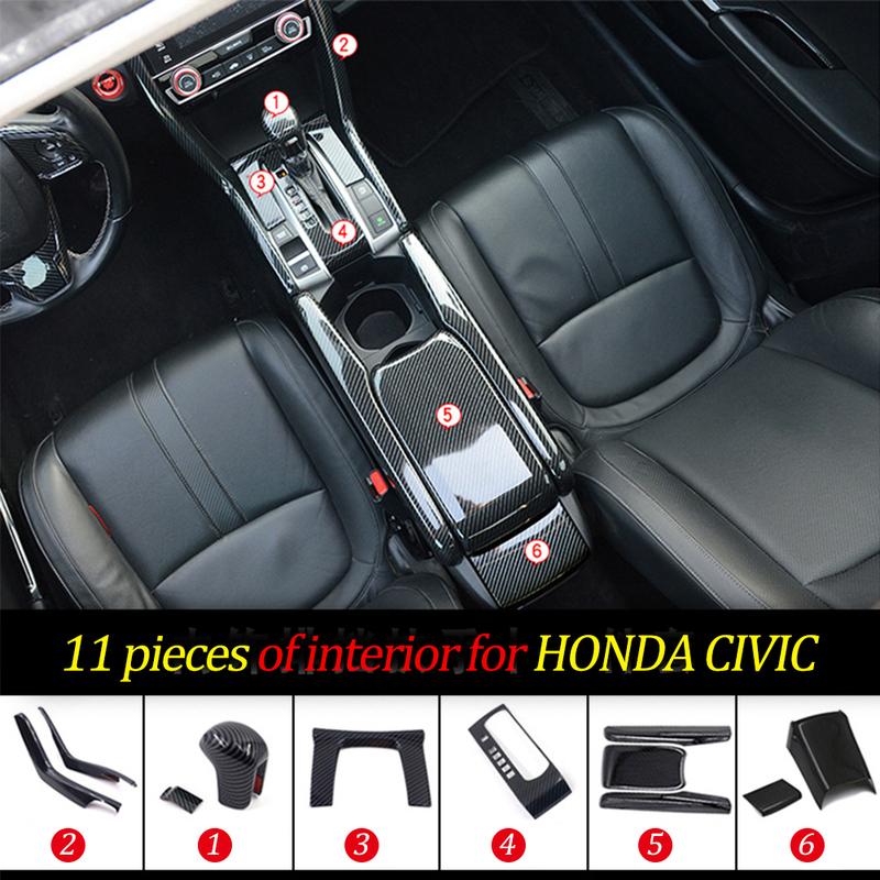 Carbon Fiber Car Gear Panel Trim Shift Panel Central Armest Box Decor Cover for Honda Civic 10th 2016-2020 Car Accessories