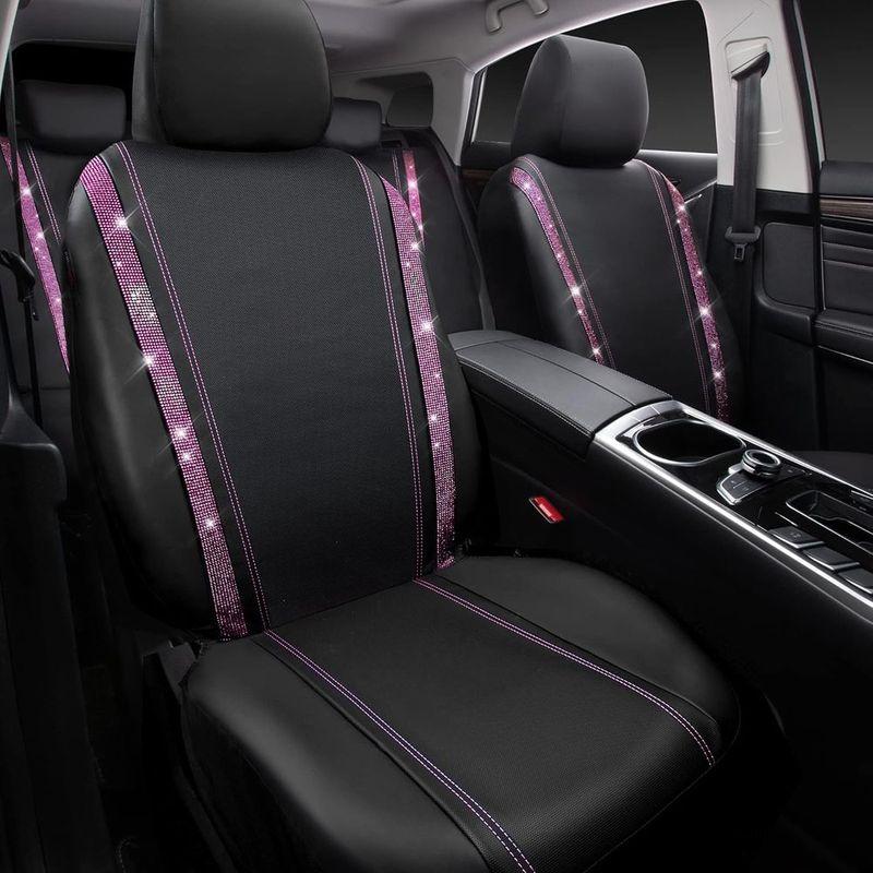 Glittering Rhinestone Waterproof Faux Leather Car Seat Covers, Universal Fit, Zippered Rear, for Women & Girls, Black Pink