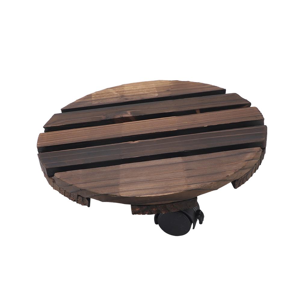 Wooden Plant Stand, 360 Degree Rotation Round Stand with Wheels for Indoor and Outdoor Flower Pots, Plant Cart with Rollers for Courtyard