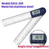 Shahe 0-200 Mm 7'' Digital Protractor Angle Ruler Electron Goniometer Protractor Inclinometer Angle Meter Measuring Tools