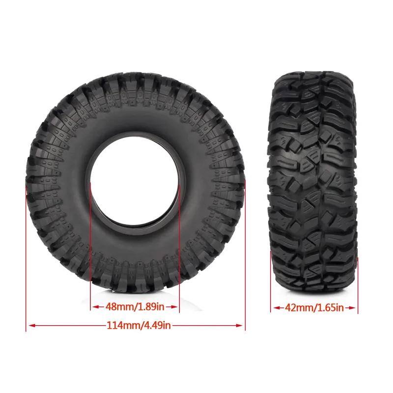 4Pcs 1.9 Inch Rubber Rock Crawler Tires 114mm Tyre for 1/10 RC Car Axial SCX10 90046 TRX4 Capra Redcat Gen8 YIKONG WRAITH RR10