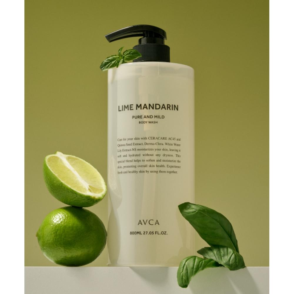 AVCA Ceramide Body Wash 800ml Lime & Mandarin Scent is a low-irritation, large-capacity body cleanser designed for dry skin, featuring ceramide that strengthens the skin's moisture barrier while gently cleansing. The refreshing and dreamy scent of lime and mandarin envelops the body, providing a fresh finish. The saponin in quinoa extract naturally cleans the skin, leaving it clean and refreshed, while maintaining moisture after cleansing. This product is mildly acidic with a pH of 5.5, minimizing skin irritation. With a large capacity of 800ml, it is suitable for everyday use and available in single or double sets.