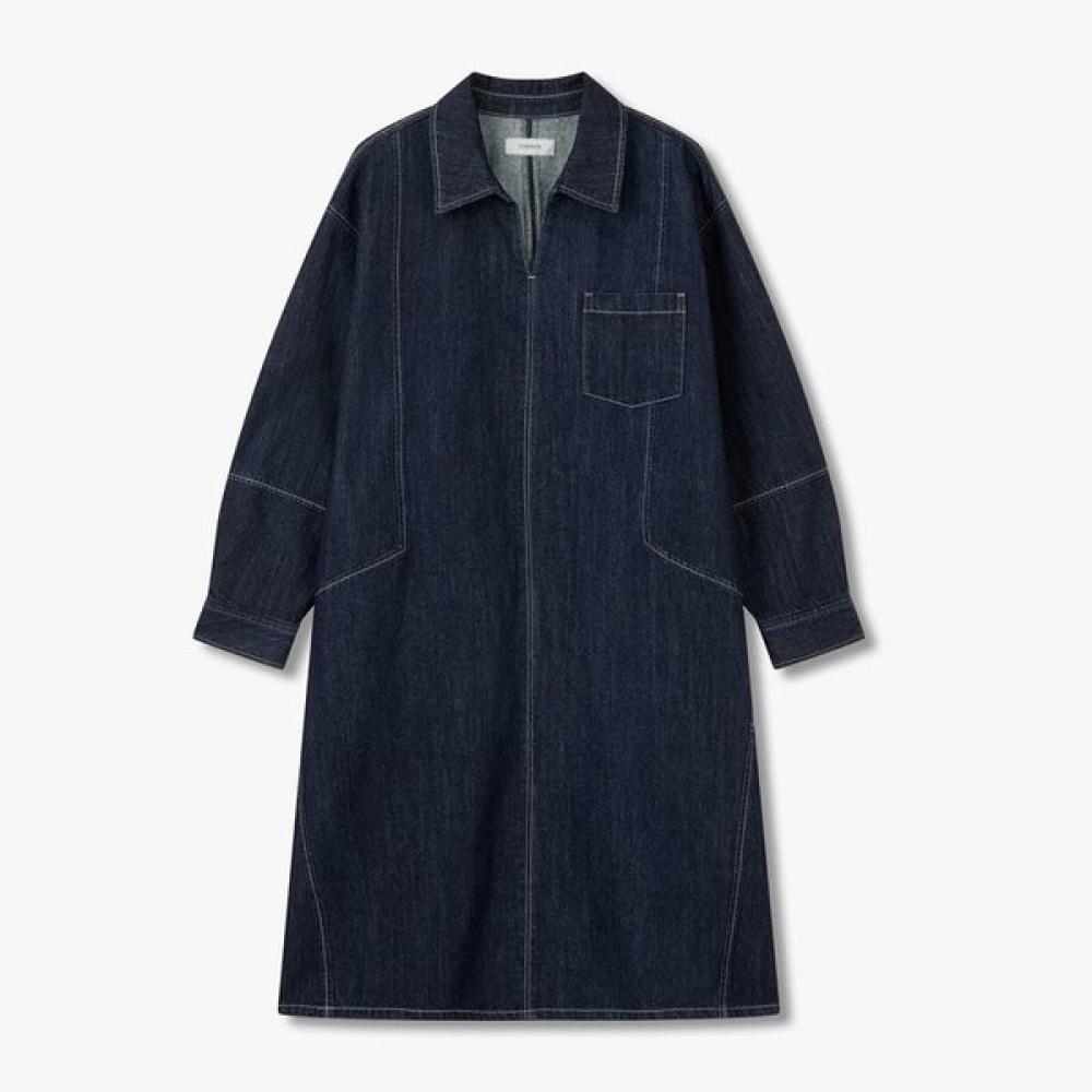 The Collared Tunic Denim Dress combines an intellectual collar design with a comfortable tunic silhouette. With a basic design made from denim, it can be styled casually and allows for various stylings.