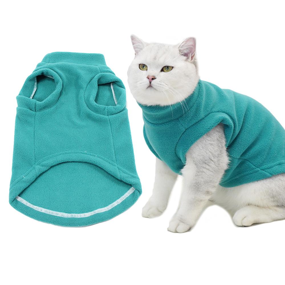 Casual Pet Clothing Winter Solid Color Cat Clothes Warm Vest Muppet Hairless Cat Blue Cat