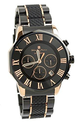 Salvatore Marra Men's Chronograph Watch, 10 ATM Water Resistant, Business/Formal, Italian Brand, Limited Edition, SM15104 (Black/Pink Gold) [Parallel