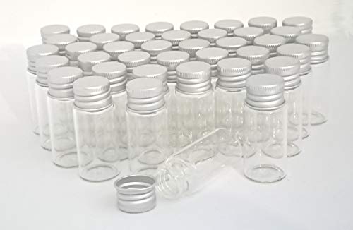 [narunaru] Aluminum Cap Mini Glass Bottles, 10ml Capacity, 22mm X 50mm, Set of 40, Glass Bottles with Screw Caps